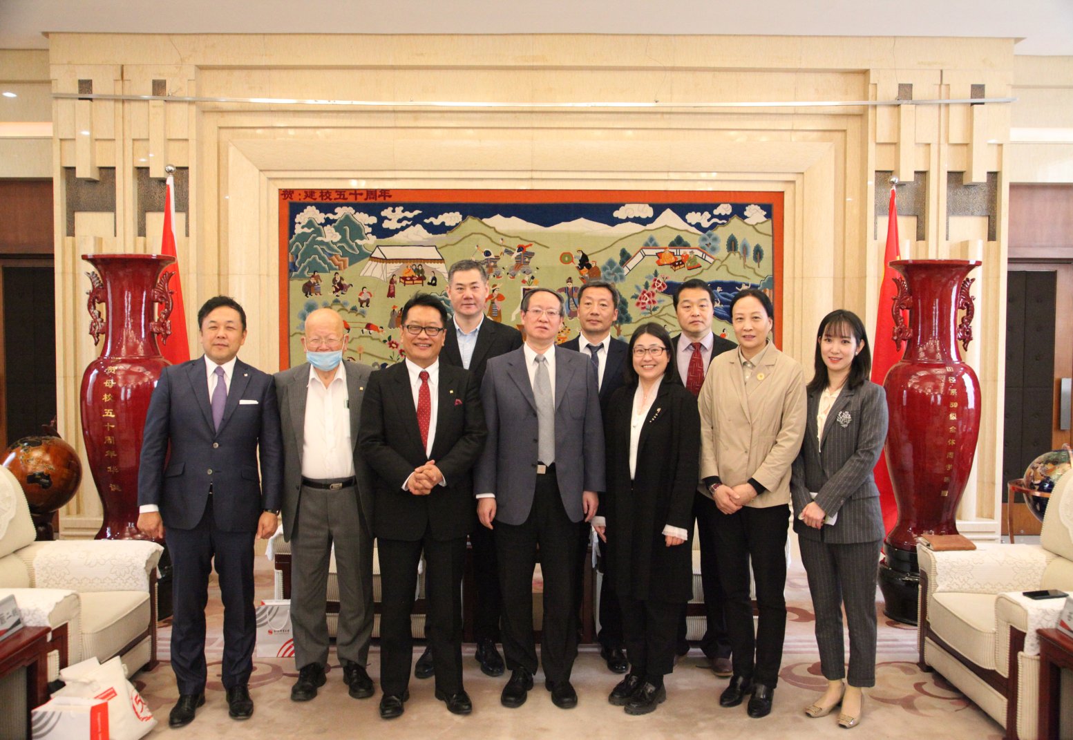 4月13日上午,日本中国友好协会代理理事长揚原安麿一行7人来新葡萄交流访问,党委副书记、常务副校长高峰会见代表团。