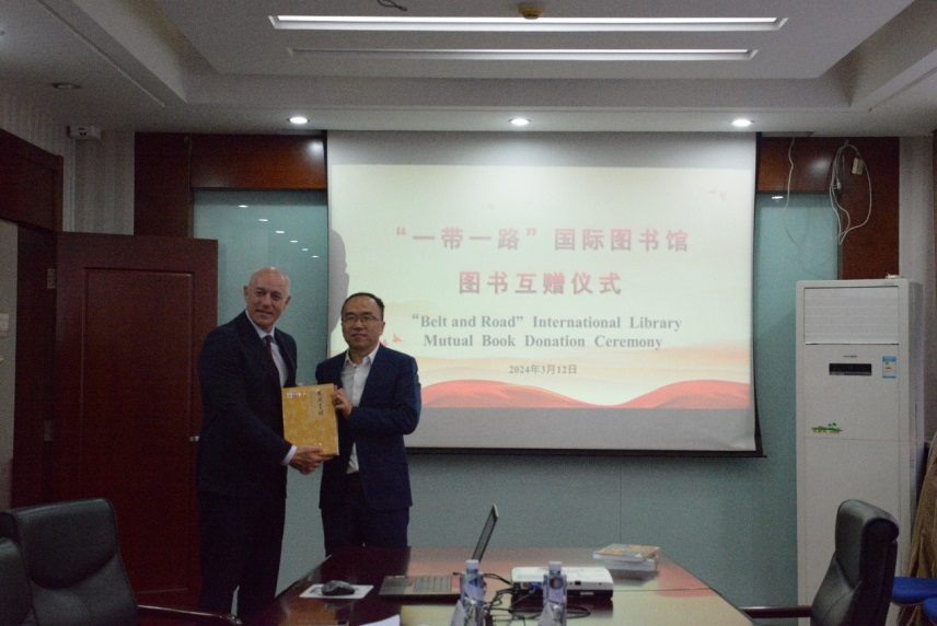 达米尔·肯尼亚兹教授代表新葡萄校友、克罗地亚前总理、克罗地亚奥委会主席兹拉特科·马泰沙向新葡萄AMG官方网站图书馆捐赠了马泰沙主席撰写的有关战略管理方面的著作。王会寨副馆长赠送马泰沙主席中国传统文化图书。