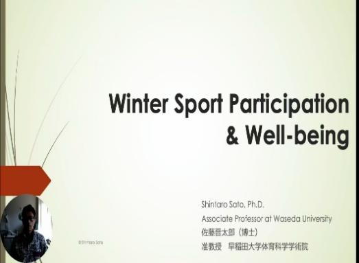 佐藤晋太郎副教授采取线上视频参会方式,以《冰雪运动参与幸福感研究》为题发表了主题报告。他以老龄化社会为背景,为振兴冰雪运动对经济发展的重要作用,从冰雪运动参与与居民幸福感这一微观视角展开分析,指出大众通过参与冰雪运动时与大自然接触影响人的心理活动进而增加人类幸福感。