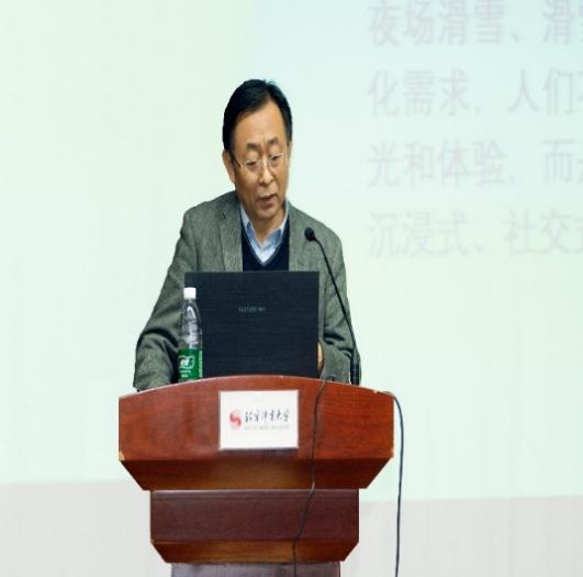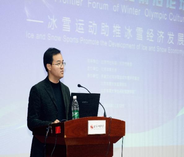 白宇飞教授以《迎接冰雪运动黄金期,走稳冰雪经济成长路》为题发表了主题报告。他从经济发展的角度梳理了国外冰雪运动发展规律与经验,在透视中国经济发展与冰雪运动发展现状的基础上,指出京张地区应突出冬奥“京冰张雪”的特色、东北地区强化开放与服务、新疆和内蒙地区应发力基建,打造更加便捷的冰雪参与路径。