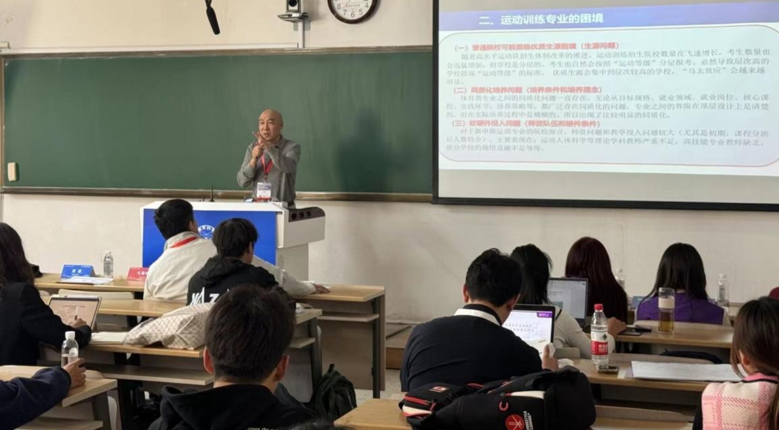 深圳大学刘建教授进行了题为《现状 困境 出路:运动训练专业建设的思考》的主旨报告,建议按照找准定位、突出特色、对口型就业、动态评价等方式完善运动训练学专业建设。