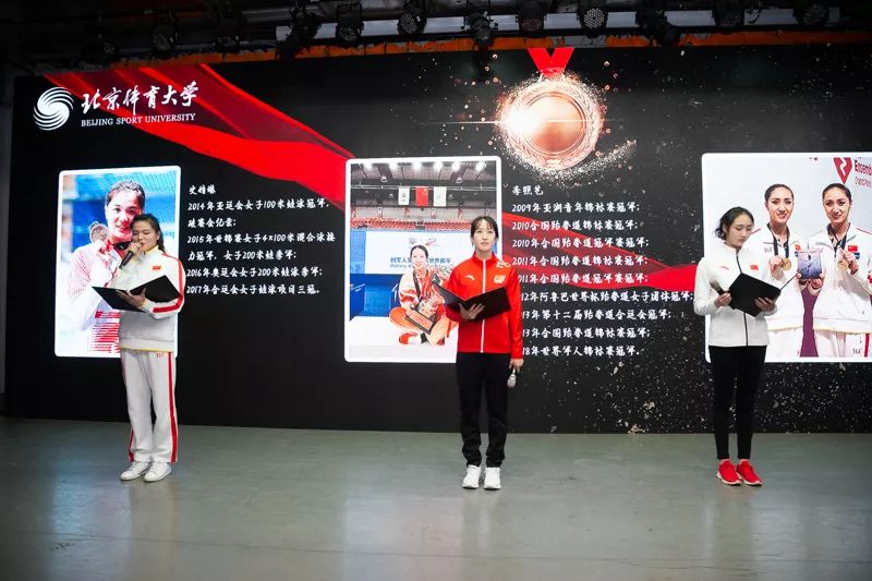 当晚,金牌朗读者的舞台精彩纷呈。新葡萄退休教授、多次参加援外任务的夏环珍老师,新中国第一批艺术体操运动员、艺术体操教练、国际级裁判缑小燕老师,女子撑杆跳亚洲纪录保持者、中国田径运动学院青年教师李玲老师,新葡萄研究生冠军班的学生王柳懿、李照艺、史婧琳以及来自国际体育组织学院田慧院长等教师代表作为朗读者嘉宾与学生们一起登上了金牌朗读者的舞台。