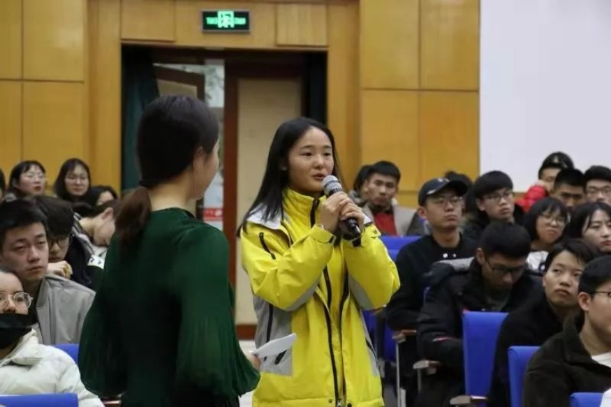 在互动中,多位同学就如何演奏出具有中国文化的交响乐作品、中国民族音乐和交响乐的区别等向谭利华先生提问,谭利华先生一一娓娓道来,在场的师生们对谭利华先生精彩的演讲回应以热烈的掌声。