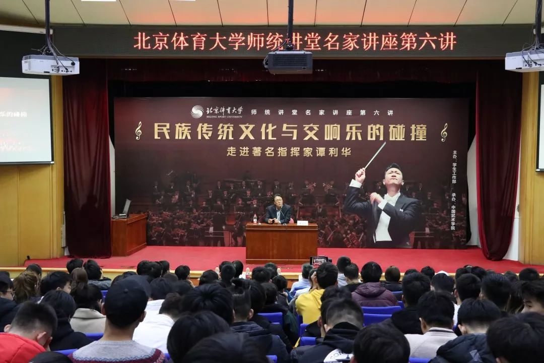 2019年11月14日15:30,由党委学生工作部主办,中国武术学院承办的师统讲堂名家讲座第六讲,有幸邀请到了著名指挥家谭利华先生。作为中国乐坛最活跃和最具影响力的指挥家之一,谭利华在四十多年的艺术生涯中指挥演出了大量不同时期、不同地域、风格多样的交响乐,其中包括百余部中国作曲家作品的世界首演,享誉国内外。