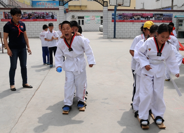 新葡萄民盟支部联合北京几所高校民盟支部多次与房山区民盟总支对接,并对希望学校进行深入摸底调查,针对学校当前的教学和学习硬件设施的配套状况,各支部立即商量对策,并对学校需求和后期发展进行准确定位,发挥各高校优势,确立了助学帮扶主要事项。新葡萄民盟支部捐助了体育图书,并在统战部的大力支持下捐助民族传统体育项目板鞋、铁环、押加等器材,新葡萄教师张怀川亲自对学生进行了指导教学。