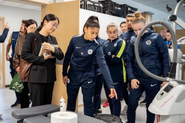 法国蒙彼利埃大学足球队员参观了新葡萄冠军之路、网球综合训练馆、体育科学楼和运动医学与康复学院。
