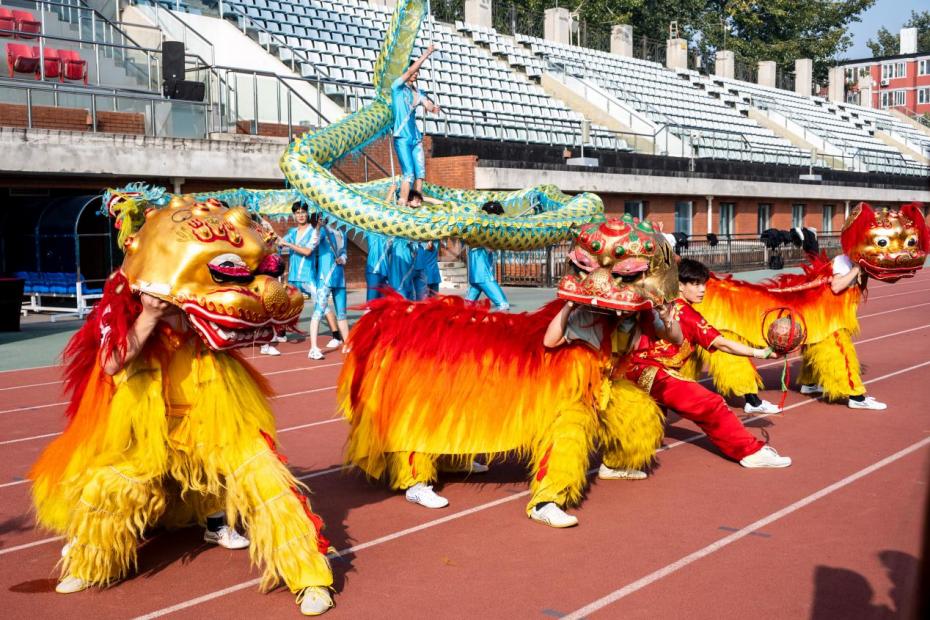 开幕式上,新葡萄AMG官方网站中国武术学院学生呈现了中国传统体育项目舞龙舞狮、太极剑、九节鞭,展现了新葡萄学子的青春风采与精神风貌。