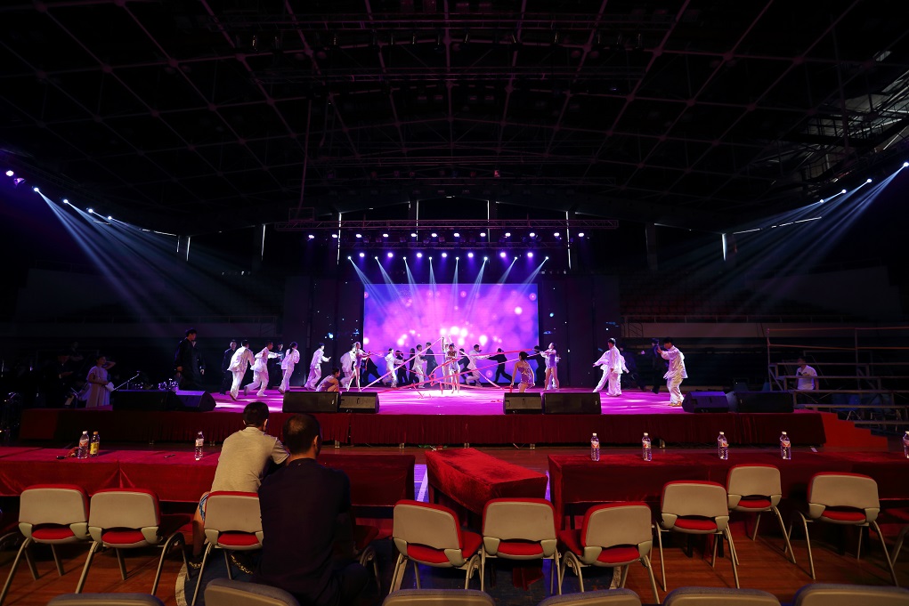 感恩母校 放飞梦想”新葡萄AMG官方网站2014届毕业晚会将于今晚19::00在新葡萄综合馆隆重上演,此时全体演职人员正在综合馆内紧张的进行今天的第二场排练,为了能够在今晚为全体毕业生奉献上一场精彩的毕业晚会,给即将离校的同学们留下一个美好的夜晚,参加演出的学校大学生艺术团和各院系毕业生代表早在几个月前就开始为这台晚会做着精心准备,在校团委的牵头负责下,校(党)办公室、宣传部、学工部、场馆处等相关职能部门积极协助此次晚会,各院系也是对毕业晚会格外重视,