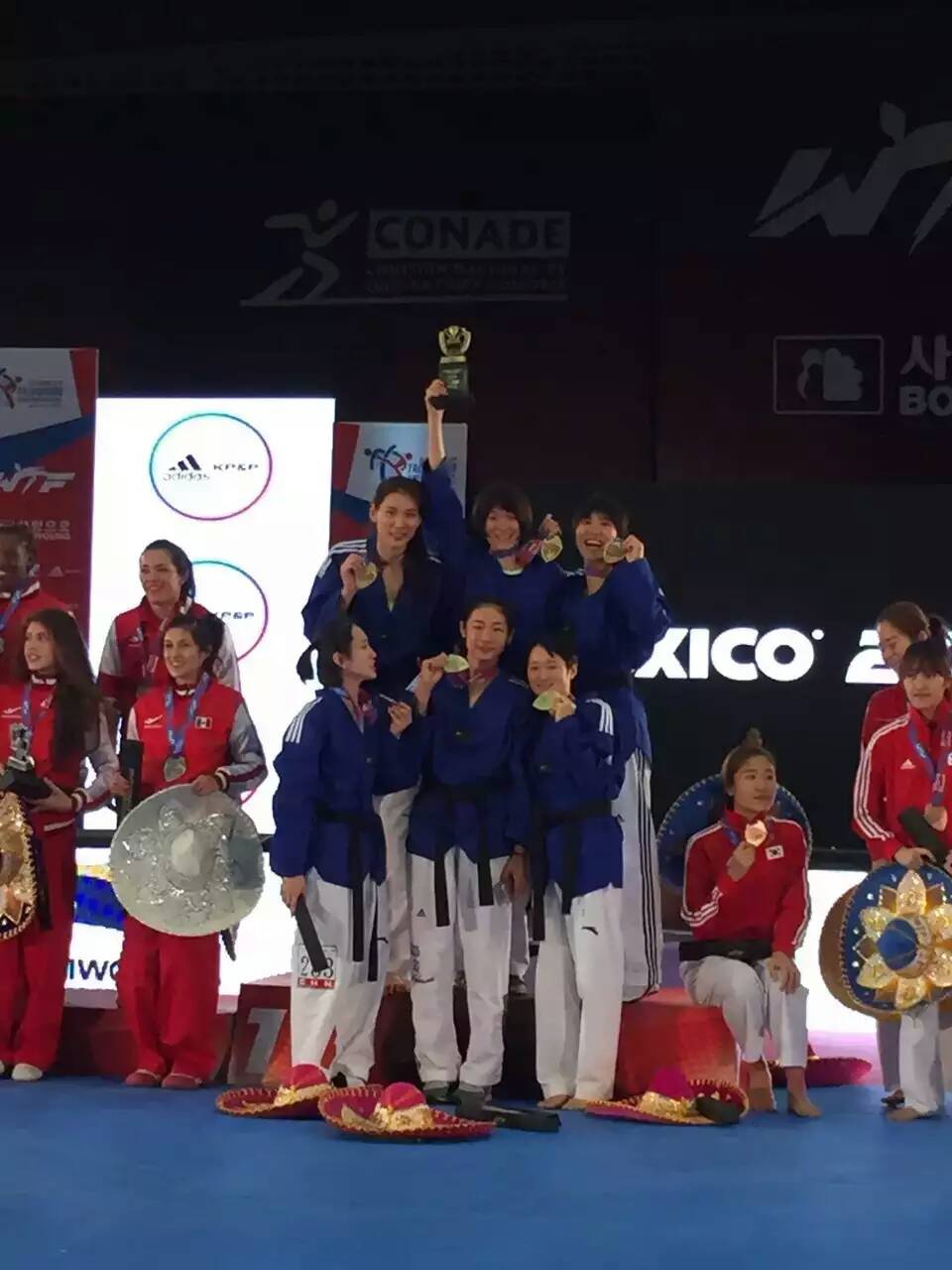 在刚刚结束的2015年墨西哥跆拳道总决赛及世界杯赛中,中国跆拳道女队发挥出色,共夺得3枚金牌1枚铜牌。其中在团体赛中以强阵出击,勇夺冠军,重新树立了中国女子跆拳道在世界女子跆拳道中的霸主地位。90后小将郑姝音在比赛最后时刻力挽狂澜,勇夺+67公斤级冠军,顺利获得2016年里约奥运会参赛资格。本次比赛的另一名个人冠军是—49公斤级的老将吴静钰,早在今年10月份举行的2015年世界跆拳道大奖赛曼彻斯特站比赛中,吴静钰就以12∶0的大比分优势战胜泰国选手,获得该级别的冠军,提前锁定了里约奥运会入场券,同时还实现了跆拳道史上女子个人项目的大满贯。祝贺中国跆拳道队。