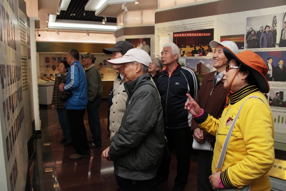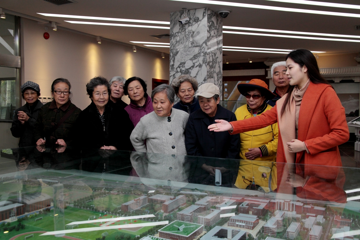 在讲解员的带领下,老同志们饶有兴致地看着沙盘模型上面展示的学校全貌,然后来到校友查询机前好奇的观看讲解员操作,一边观看一边说着:“快看看有没有XXX?”接下来,在校史馆展厅里面老同志们怀着激动心情在一张张照片上面回顾着往昔,触景生情式的纷纷讲起以前的故事,有的老同志在照片中还找到了自己的身影,特别兴奋地指给大家看。整场参观活动在一片活跃的气氛中结束。