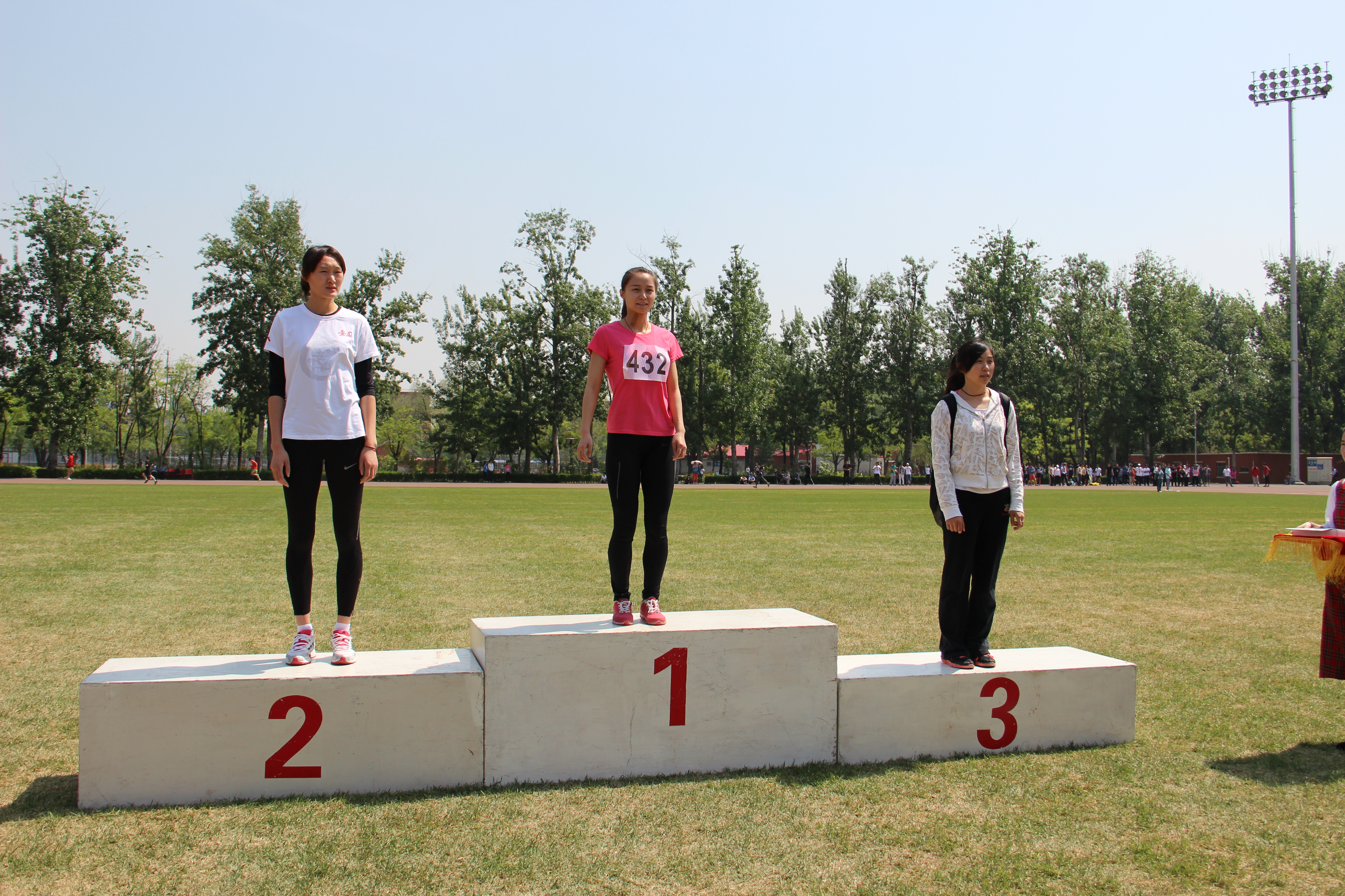 2014年4月22日上午10点20分,竞技体育学院2012级学生张立研(比赛序号:432)在校运会女子甲组三级跳远比赛中,以11米98的优异成绩打破校运会纪录,获得女子甲组跳远第一名。比原纪录(11米76)突破0.22米。