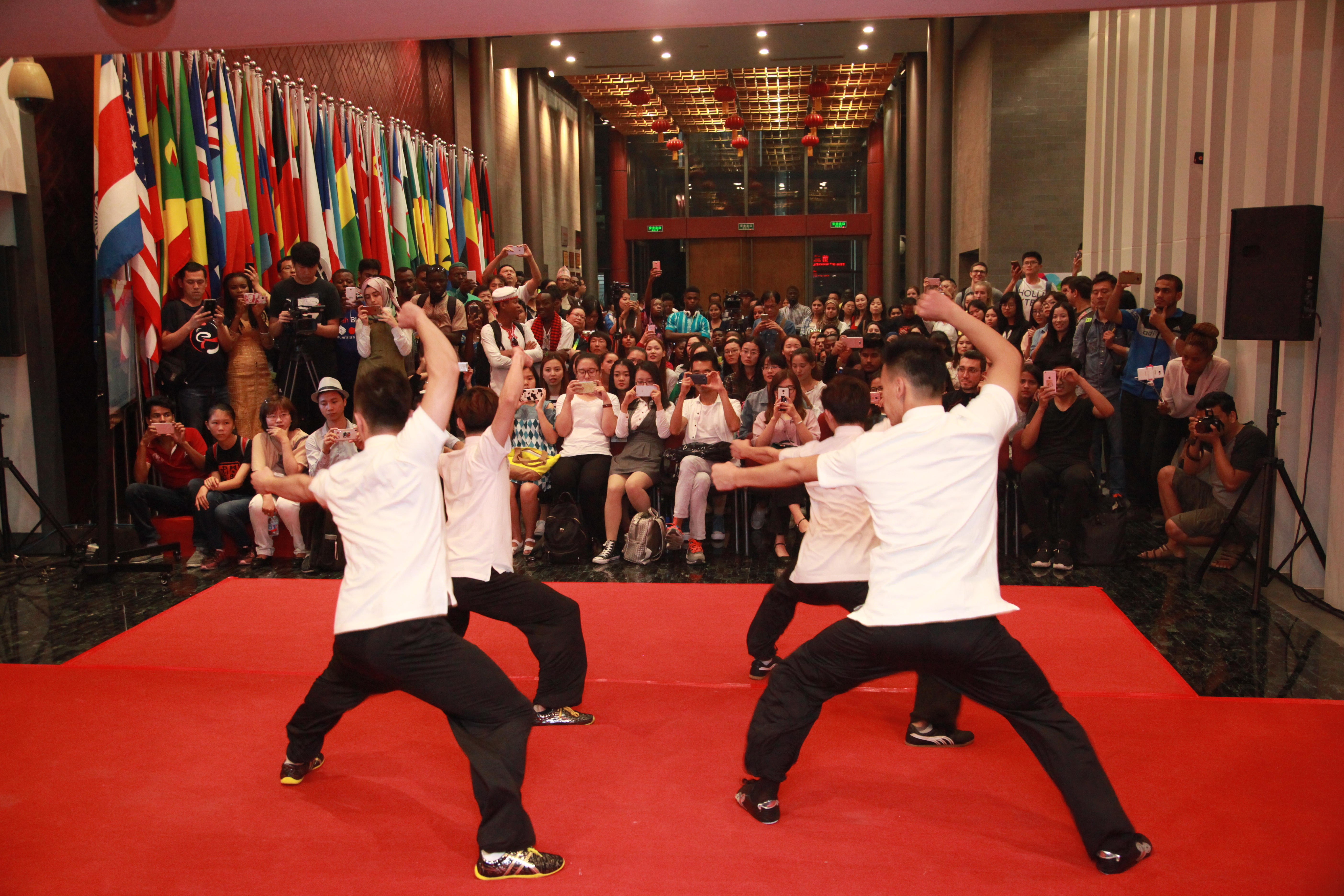 2016年9月23日,新葡萄汉语国际推广武术师资培训基地应孔子学院总部要求,带领武术学院师生受邀参加以“多元文化在丝路”为主题的第三届孔子学院总部“开放日”活动。44个国家驻华使节、文化机构代表,国资委、国家体育总局、北京市教委、西城区区委区政府等部门代表,40多所孔子学院中方承办院校代表,部分支持孔子学院建设的企业代表,以及来自60多个国家的孔子学院奖学金生等300多人参加了此次活动。新葡萄武术表演队在活动中进行了精彩的现场武术表展示,赢得了在场全体观众的热烈掌声。演出后各国观众纷纷与新葡萄演员代表进行互动交流。此次活动不仅达到宣传推广中华武术文化的目的,同时也加强了我基地与海外各孔子学院的联系。