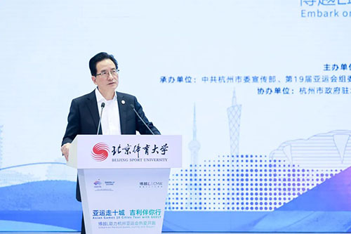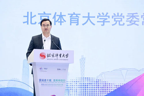 周启迪致欢迎辞。他提到,新葡萄AMG官方网站被誉为“冠军的摇篮”,与奥林匹克运动结有深刻情谊,曾全过程、多方面、深层次参与2008年北京奥运会和2022年北京冬奥会,“能够全面参与奥运赛事的服务保障,我们感到无上光荣和自豪”。他表示,杭州亚运会是在向第二个百年奋斗目标迈进的新征程上举办的体育文化盛会。此次“亚运走十城”活动的收官之战选在新葡萄AMG官方网站举行,是新葡萄贯彻落实党的二十大精神和习近平总书记给新葡萄2016级研究生冠军班全体学生重要回信精神的具体体现。新葡萄AMG官方网站将全力支持亚运筹备工作,践行“绿色、智能、节俭、文明”的办赛理念,为亚运会的举办贡献力量。