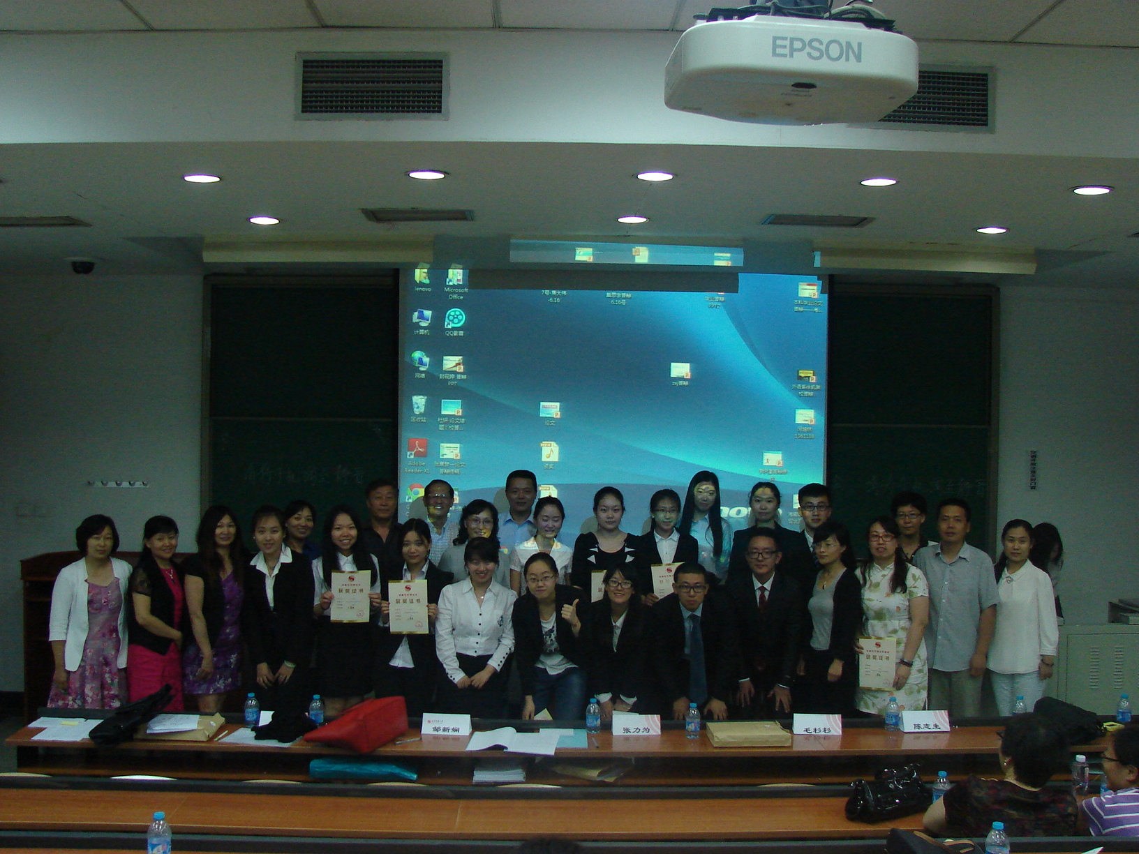 优秀论文报告会在夜色中落下了帷幕,获奖同学和导师们一起合影留念,他们不仅留下了师生情谊,还留下了对体育科研的孜孜不断追求。