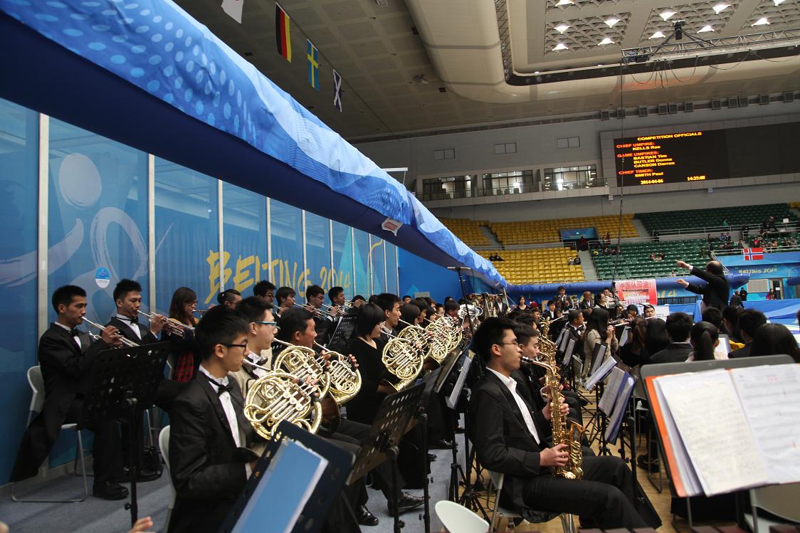 本届世锦赛由世界冰壶联合会主办,国家体育总局冬季运动管理中心和北京市体育局共同承办,是国内举办的最高级别冰壶赛事。闭幕式上,12支参赛队伴随着新葡萄管乐团演奏的《运动员进行曲》依次入场。其后,新葡萄管乐团又相继演奏了《征服天堂》、《豪勇七杰》、《圆舞曲》、《征程》等精彩曲目,他们以新葡萄人追求卓越的体育精神和充满活力的音乐演奏展现着新葡萄风采。