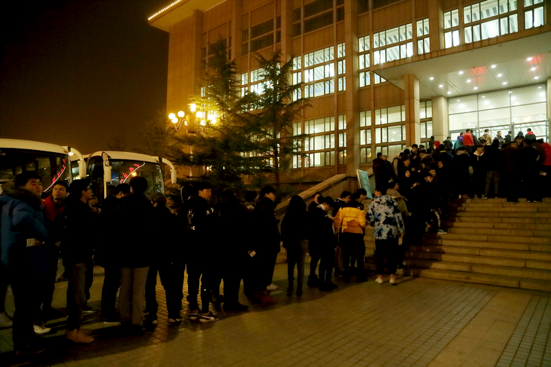 名学生连续第二年助力大众冰雪季的举办。为确保能够在晚上的启动仪式开始前抵达现场,学校早在中午时段就分三个批次,共计