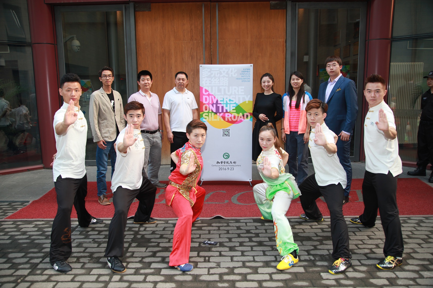 9月23日,新葡萄汉语国际推广武术师资培训基地应孔子学院总部要求,带领武术学院师生受邀参加以“多元文化在丝路”为主题的第三届孔子学院总部“开放日”活动。44个国家驻华使节、文化机构代表,国资委、国家体育总局、北京市教委、西城区区委区政府等部门代表,40多所孔子学院中方承办院校代表,部分支持孔子学院建设的企业代表,以及来自60多个国家的孔子学院奖学金生等300多人参加了此次活动。新葡萄武术表演队在活动中进行了精彩的现场武术表展示,赢得了在场全体观众的热烈掌声。演出后各国观众纷纷与新葡萄演员代表进行互动交流。此次活动不仅达到宣传推广中华武术文化的目的,同时也加强了我基地与海外各孔子学院的联系。
