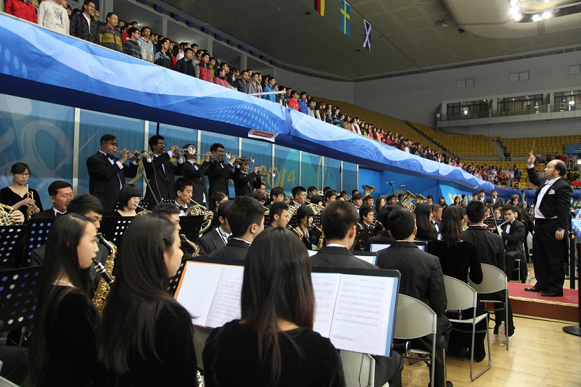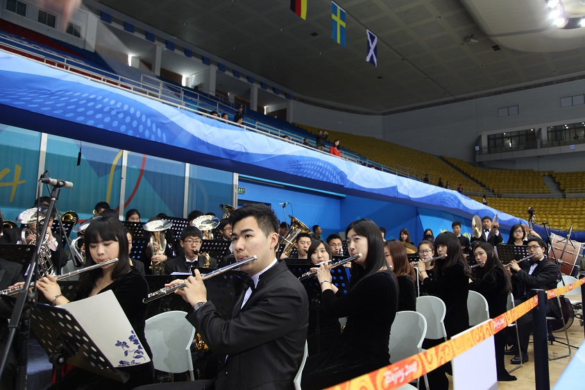 3月29日,“2014年世界男子冰壶锦标赛”在首都体育馆拉开序幕。为了下午正式演出的顺利进行,上午9时许,新葡萄管乐团及志愿者们在团委书记周启迪老师的带领下出发前往首都体育馆,提前为下午的正式演出作准备。